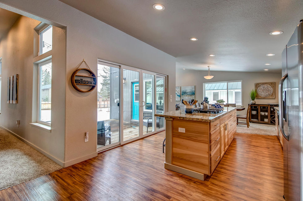 A contemporary mountain home in the heart of South Lake Tahoe. Bringing the outdoors indoors with local landscape inspired decor. A familiar color scheme to the Tahoe basin utilizing natural blues, grays, and greenery to bring it all together.